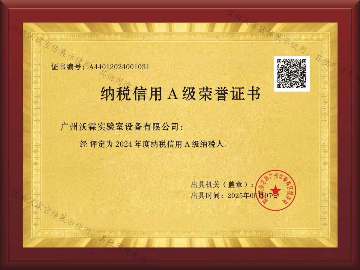 2025-06-11 喜訊|熱烈祝賀廣州沃霖實(shí)驗(yàn)室設(shè)備有限公司連續(xù)五年榮獲“納稅信用A級納稅人”稱號!